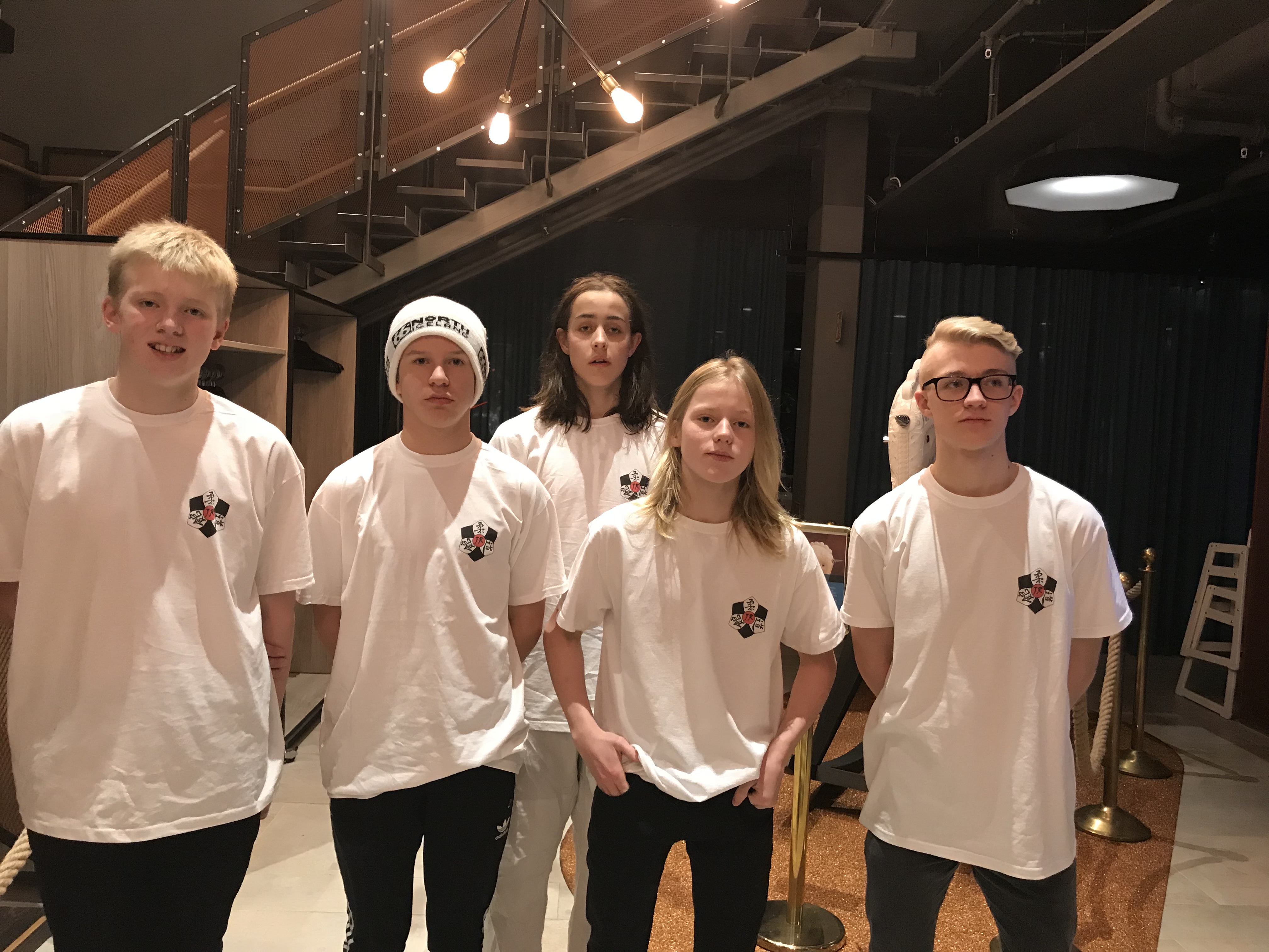 Mótið í Svíþjóð heitir Södra Judo Open og keppum við í aldurshópnum U15 þ.e. 13-14 ára. Keppendur okkar þar eru fimm þeir Kári Egilsson -55kg, Hákon Garðarsson -60kg, Kjartan Hreiðarsson -66kg, Emilían Ingimundarson -73kg og Skarphéðinn Hjaltason -73kg. Þjálfarar og fararstjórar eru þeir Garðar Sigurðsson og Heimir Kjartansson. Hér er hægt að fylgjast með gangi mála í Svíþjóð og sjá úrslit mótsins. Bolirnir sem JR ingarnir eru í voru gefnir af Inter Medica og þökkum við kærlega fyrir styrkinn.