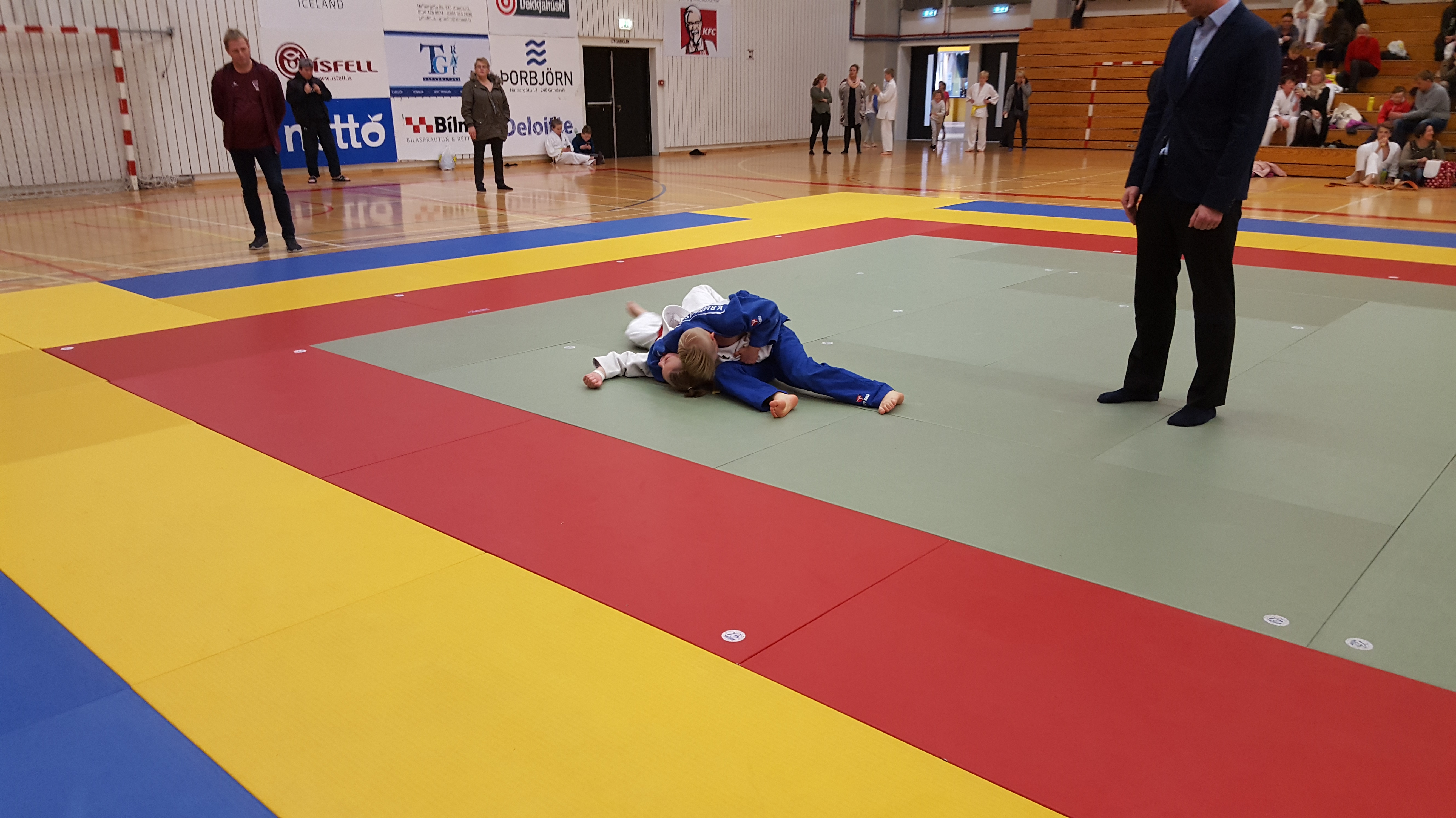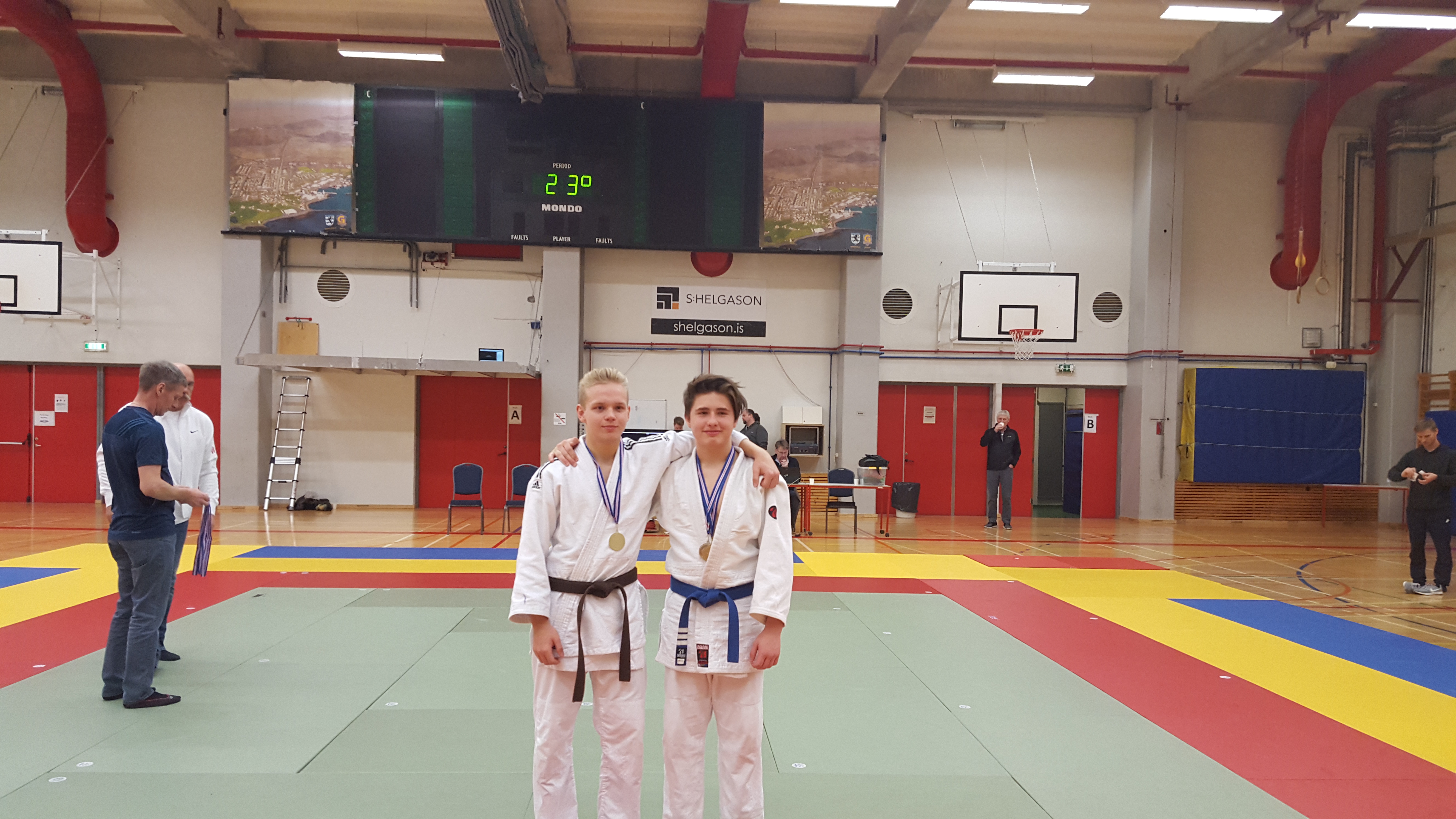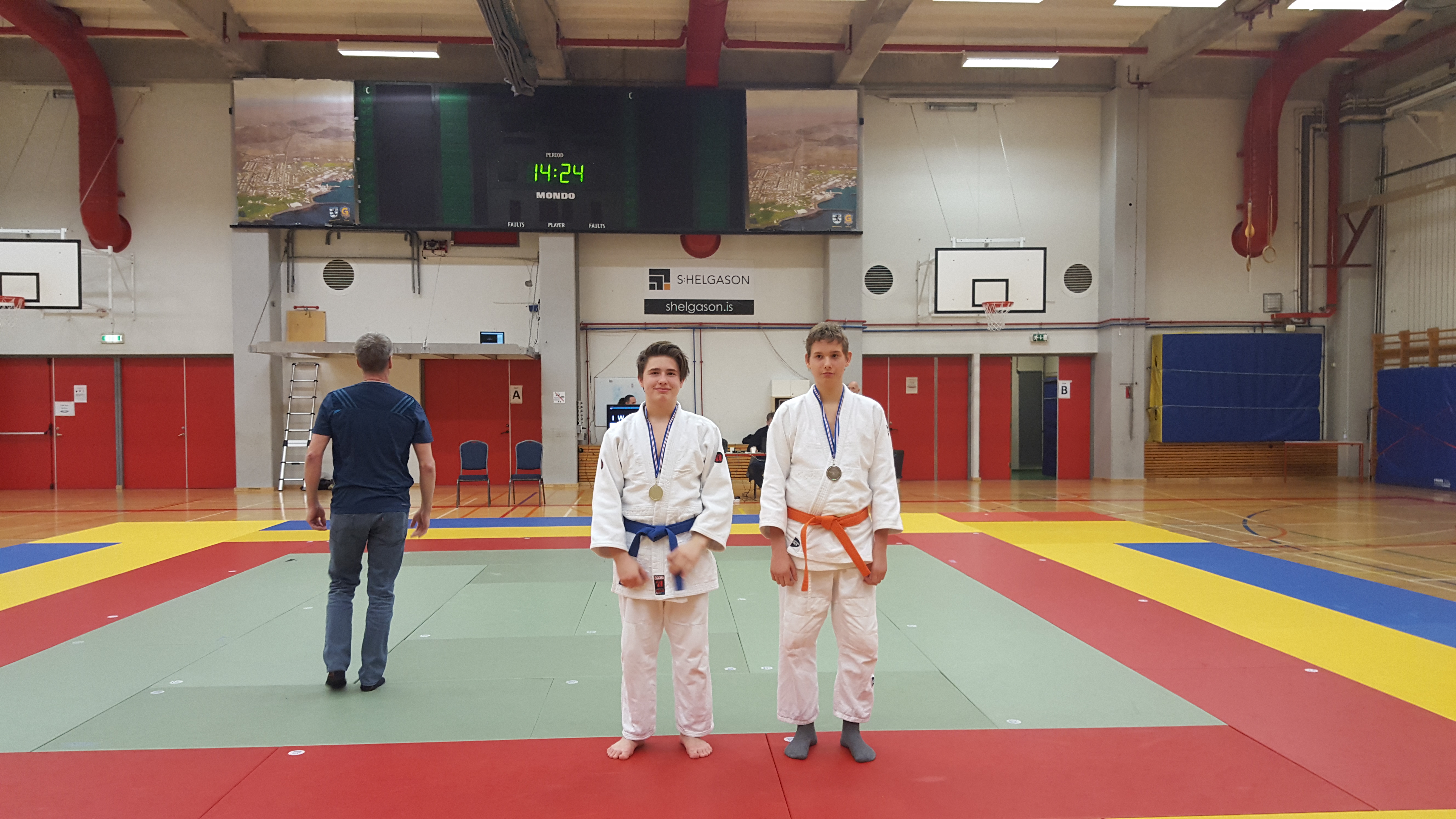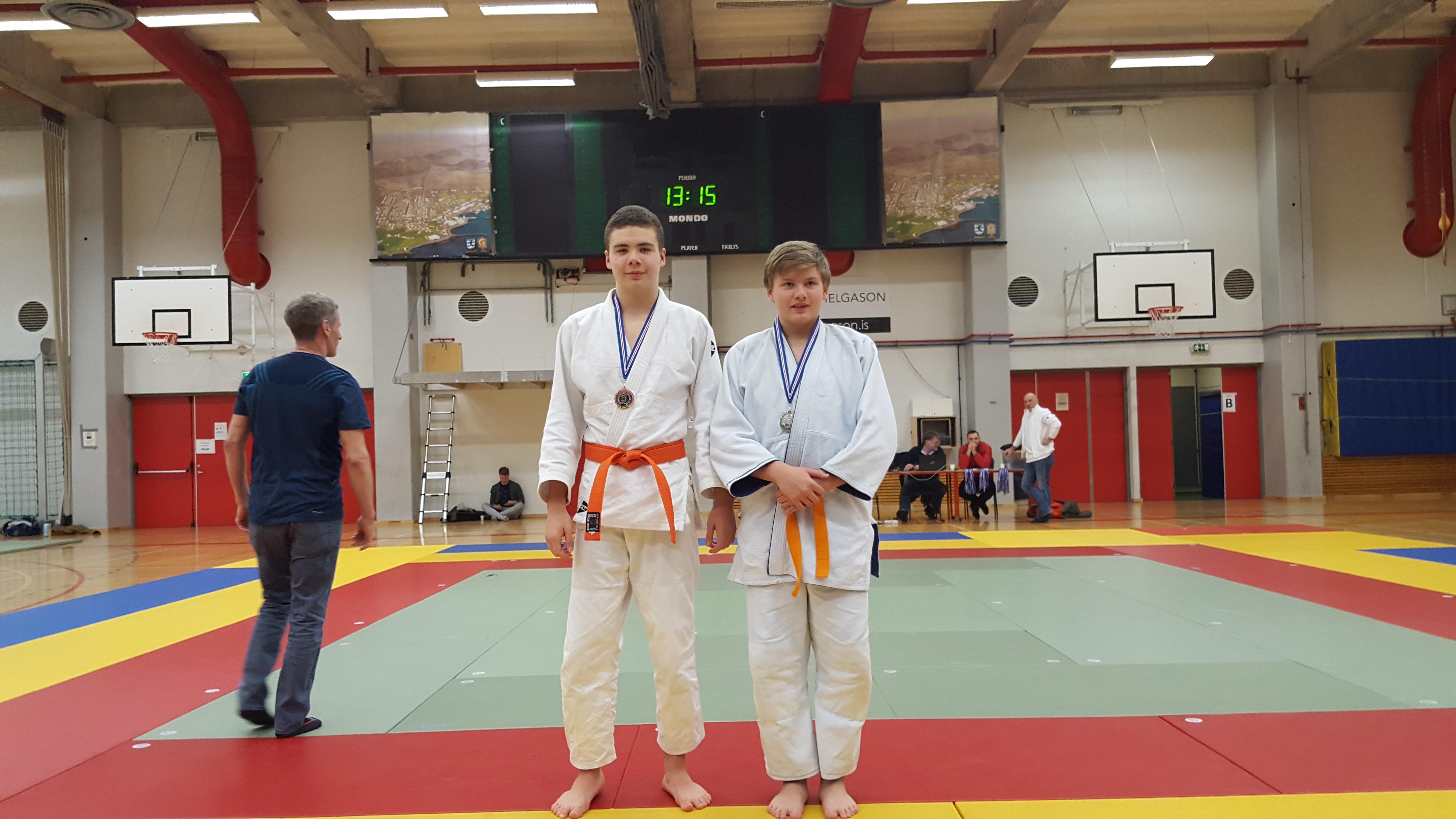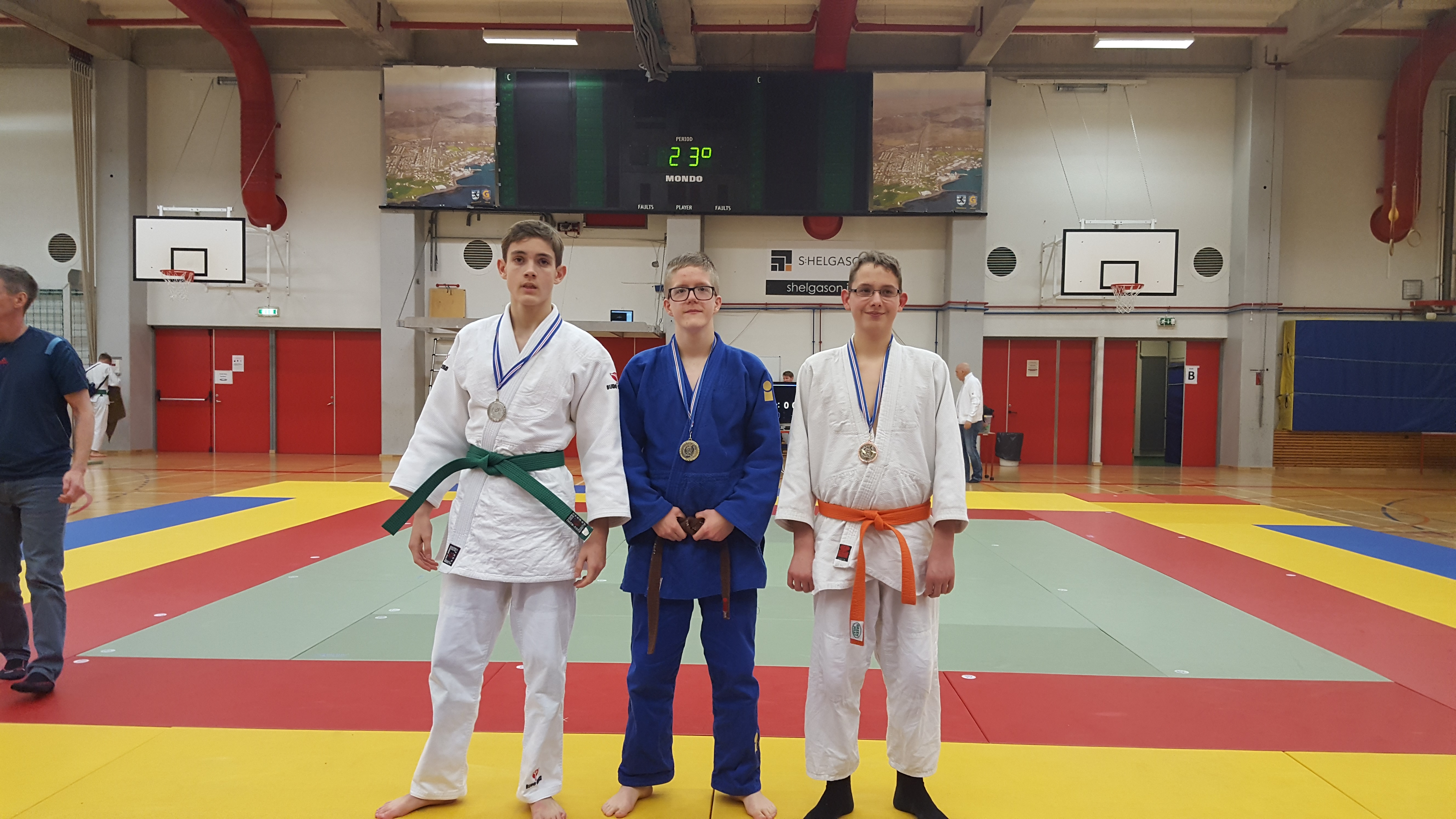 Í flokknum hans Alexanders voru þrír keppendur og vann hann fyrri viðureign sína en tapar þeirri síðari. Oddur tapar fyrstu viðureign en fær uppreisnar glímu og vinnur hana en tapar svo þeirri þriðju og er þar með úr leik. Í flokknum hans Árna voru sextán keppendur og tapaði hann fyrstu viðureign en vann næstu þrjár og fimmtu viðureign, bronsviðureigninni tapaði hann eins og áður sagði en þá var hún komin í gullskor. Seniorar kepptu eftir hádegið, Dofri Bragason fékk tvær viðureignir og tapaði þeim báðum. Í flokknum hans Loga voru sextán keppendur og komst hann í undanúrslit með því að vinna fyrstu tvær en í undanúrslitum tapar hann og keppti því um bronsverðlaunin. Í 90 kg flokknum voru sextán keppendur og tapaði Ægir fyrstu viðureign en vinnur næstu og einnig þá þriðju þar sem mótherji hans mætti ekki og tapar svo bronsglímunni. Það sama gerði Egill í 90 kg flokknum hann tapar fyrstu, vinnur næstu og þriðju þar sem eins og hjá Ægi mótherji Egils mætti ekki og þar með var Egill kominn í bronsviðureignina sem hann vann örugglega. Til hamingu Alexander og Egill, þetta var vel gert. Að sjálfsögðu óskum við öðrum keppendum einnig til hamingju með árangurinn og þjálfurum með vel heppnaða ferð þvi það vantaði bara herslumuninn að bronsin hefðu orðið þrjú í viðbót.