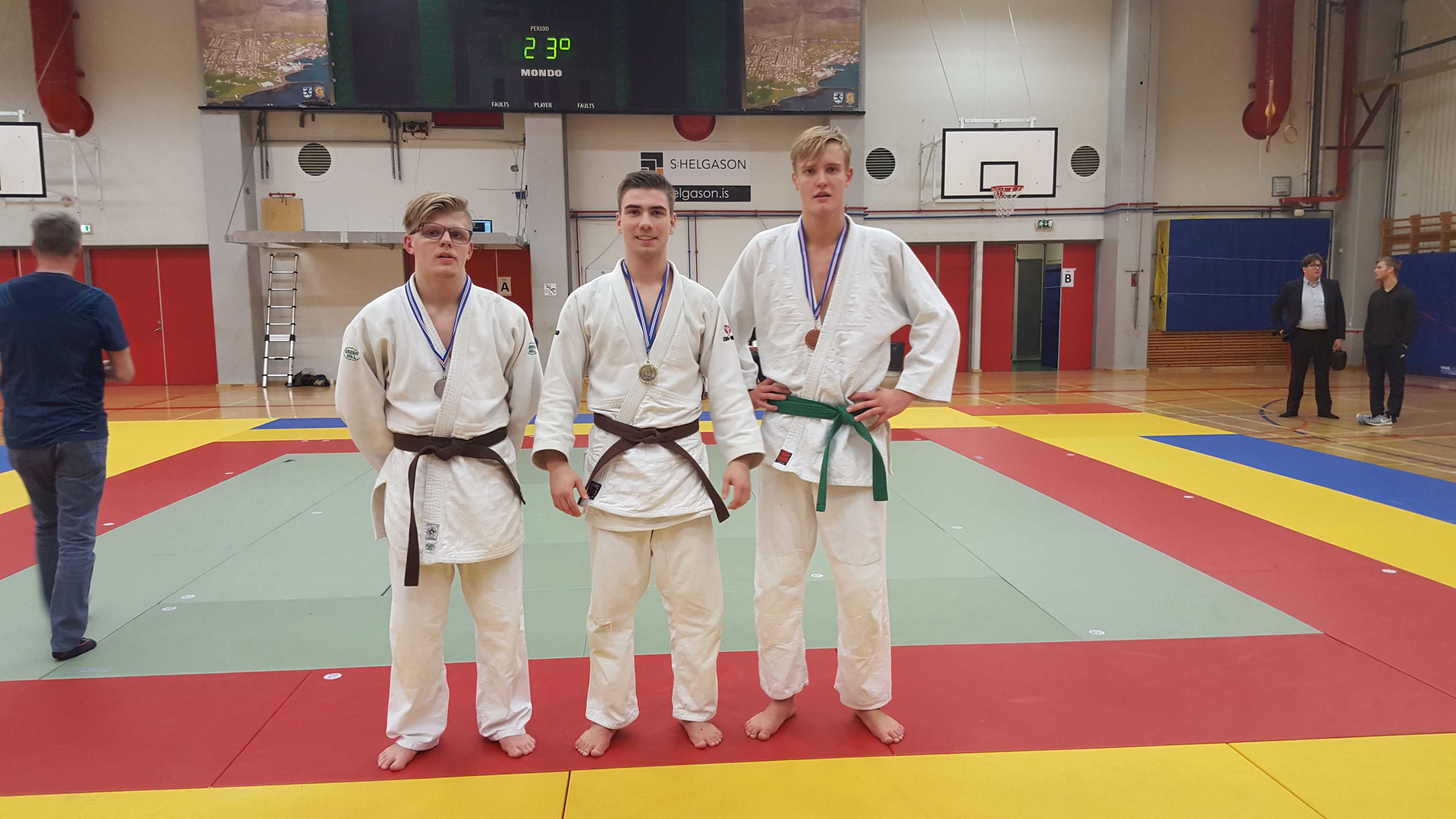 Haustmóti JSÍ í yngri aldursflokkum (U21/U18/U15/U13) var haldið í Grindavík laugardaginn 21. okt. sl. Keppendur okkar JR inga núna voru mun færri en í fyrra eða aðeins þrír og voru það þeir Hákon, Kjartan og Skarphéðinn sem kepptu í ár og stóðu sig frábærlega og unnu allir gullverðlaun. Þeir Árni Lund og Oddur Kjartans voru fjarri góðu gamni því þeir tóku þátt í öðru móti í Cardiff sama dag og aðrir sem ætluðu að keppa forfölluðust á síðustu stundu. Þátttakendur núna voru fleiri en í fyrra eða fimmtíu og einn sem er ánægjulegt og mótið var vel skipulagt hjá UMFG en það hófst kl. 11 og því lauk kl. 14:30. Af sextíu og sjö glímum unnust fimmtíu og fjórar þeirra á ippon. Að þessu sinni var það Judodeild Selfoss sem flest gullin vann og óskum við þeim til hamingju með það en hér eru úrslitin og nokkrar myndir frá mótinu.