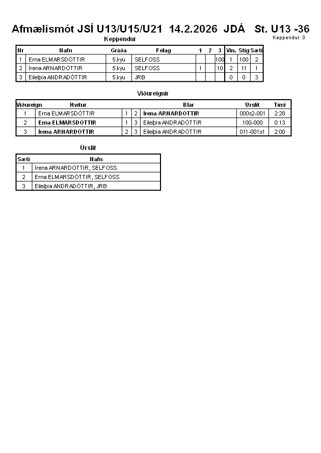 Afmælismót JSÍ U13/U15/U21 14.2.2026 JDÁ